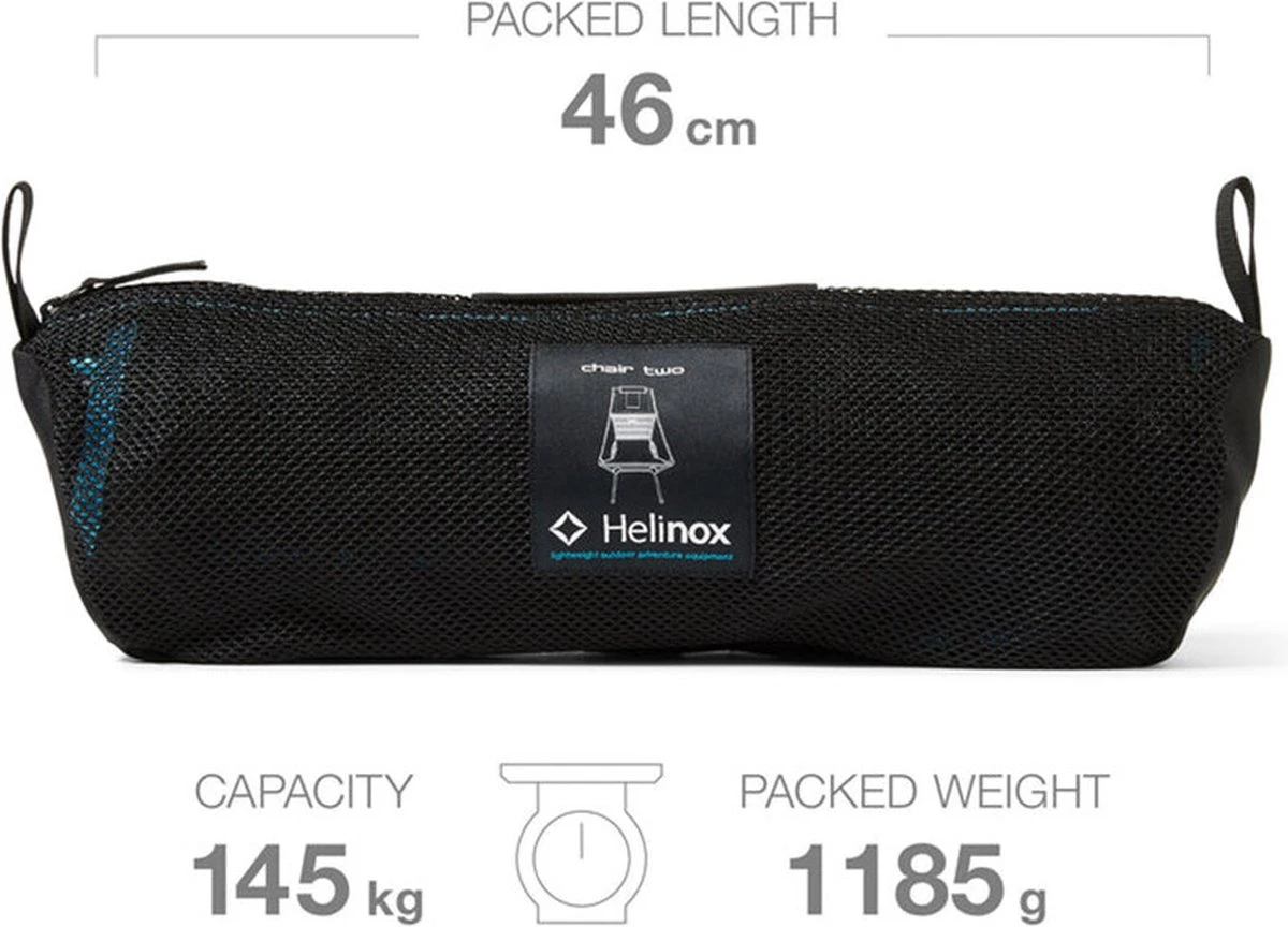 Ontworpen om een optimale balans van lichtgewicht, verpakking, ondersteuning en comfort te leveren, gaat de stoel twee gemakkelijk naar meerdaagse muziekfestivals tot weekend backpacking-uitstapjes naar zonnige dagen in een stadspark. De architectuur zit als de originele stoel één, maar heeft een hogere rug die je schouders en nek beter wiegen. Het hart van het innovatieve ontwerp is het frame. Gemaakt van het licht van Helinox, sterke gepatenteerde geavanceerde DAC-aluminiumlegering, het klapt eenvoudig samen, vouwt het klein en behandelt jaren buiten gebruik. Het verpakt in een 4 x 4 x 14 draagtas, weegt slechts 2,5 lbs terwijl u tot 320 ondersteunt, en zijn ergonomische stoel wordt geventileerd voor koeld comfort op warme dagen.