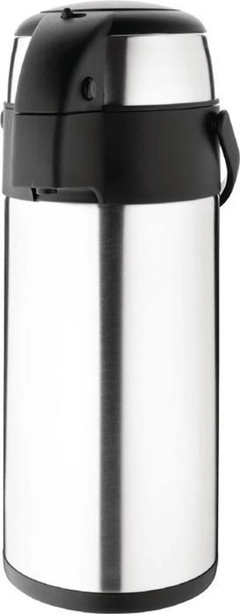 Isoleerkan met pomp. Dubbelwandig 18/10 rvs. Voorzien van handgreep.