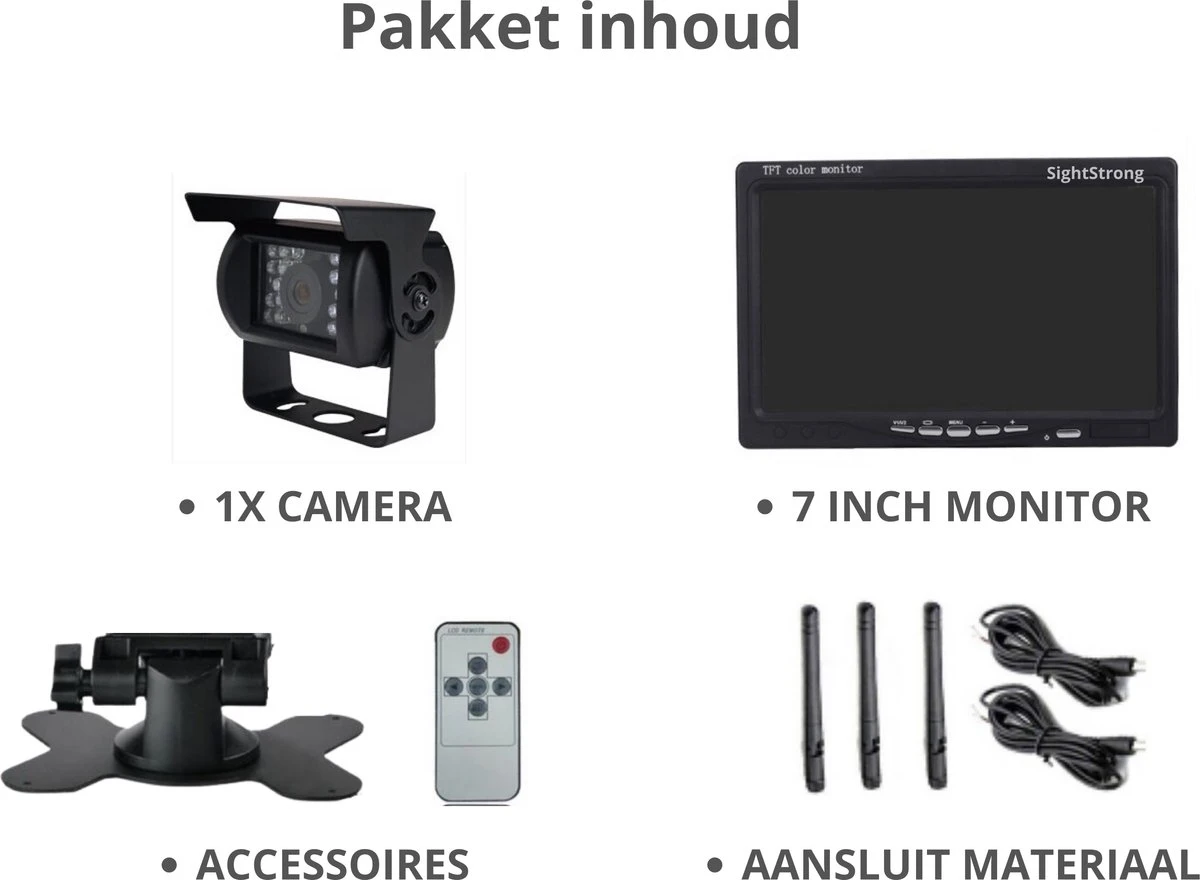 SightStrong Set Achteruitrijcamera Met Monitor – Achteruitrijcamera – Draadloos Set – Nachtzicht – Infrarood – 7” Inch – LED