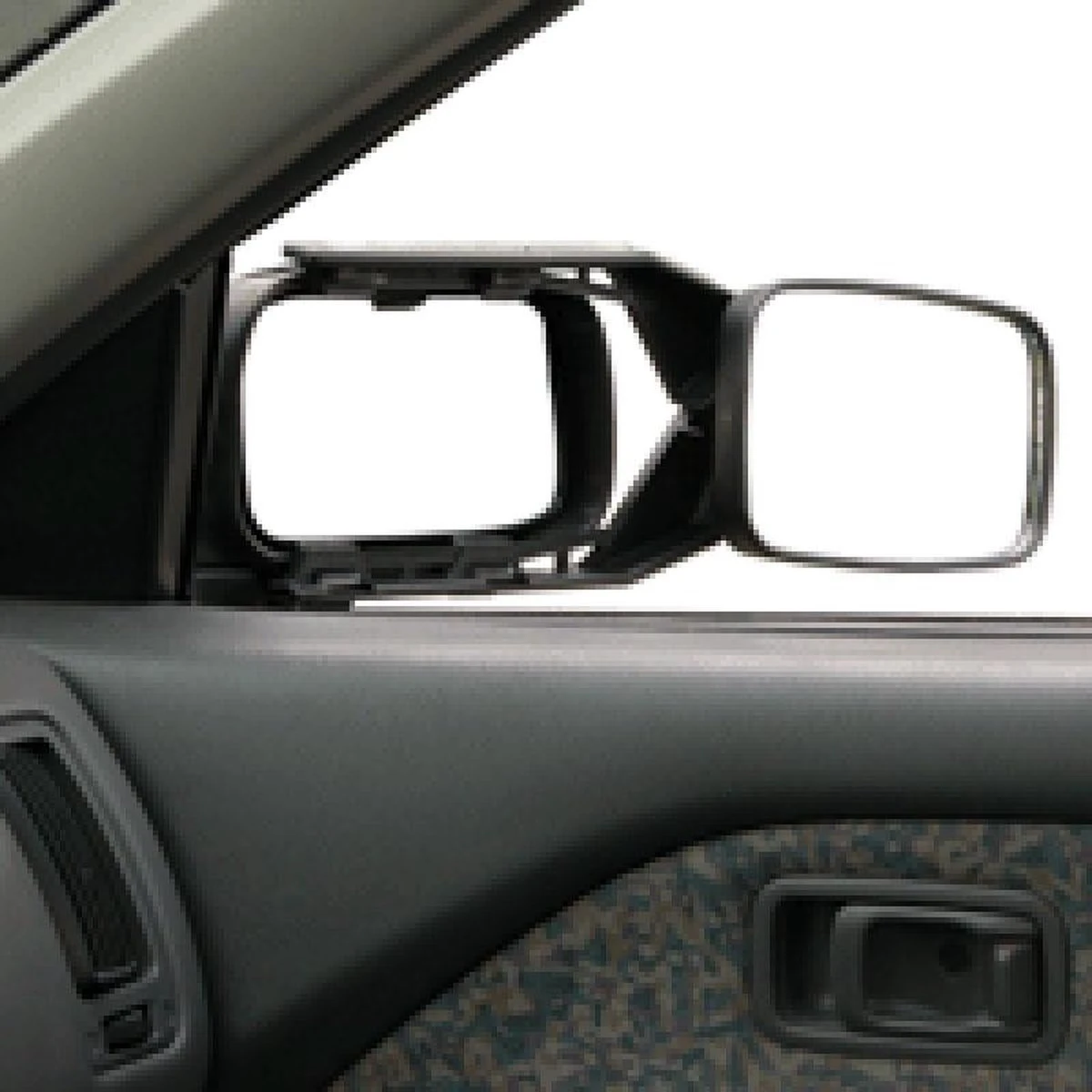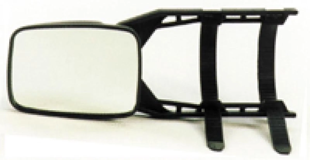 Universele opzetspiegel met flexibele armen, voor bevestiging op bestaande autospiegel. Met vlak glas.